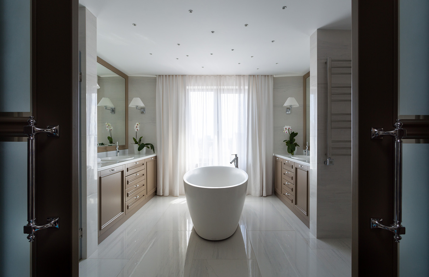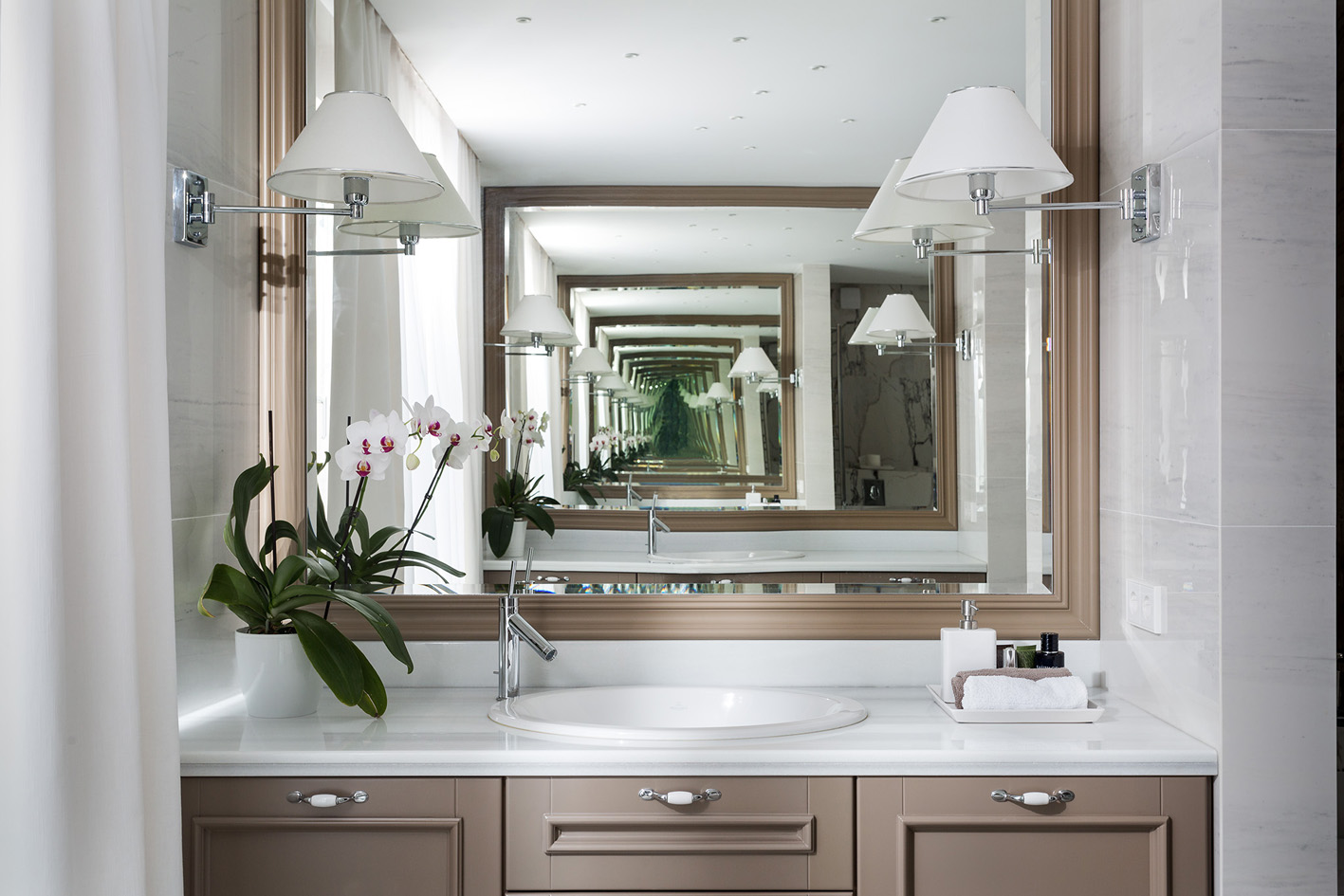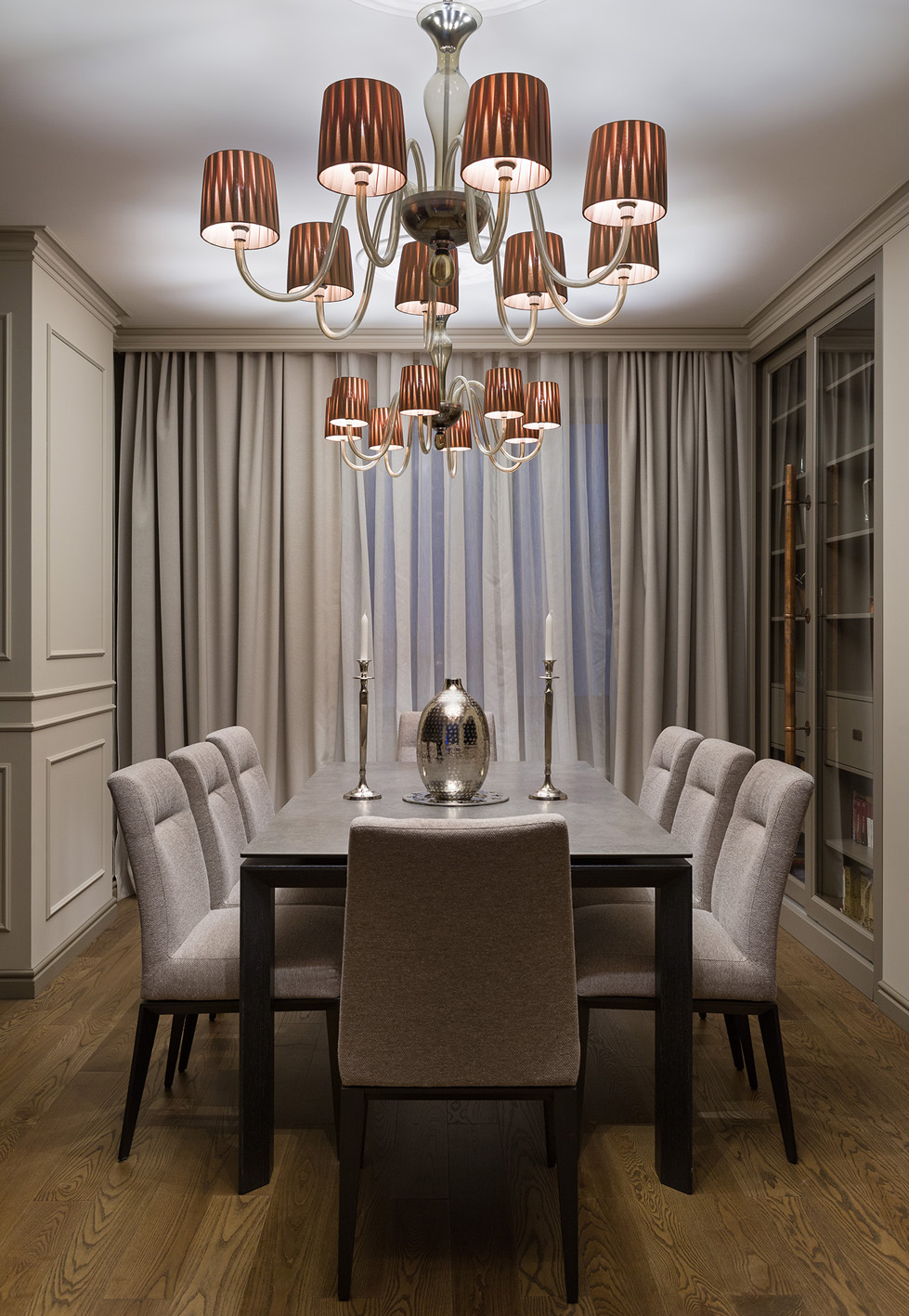 Завдячуючи багаторічному знайомству та повному взаєморозумінню із замовником, оздоблення та оформлення цих апартаментів перетворилося у захоплюючий та приємний процес, який не хотілося завершувати. Частина предметів меблів була виготовлена по кресленням дизайнера.